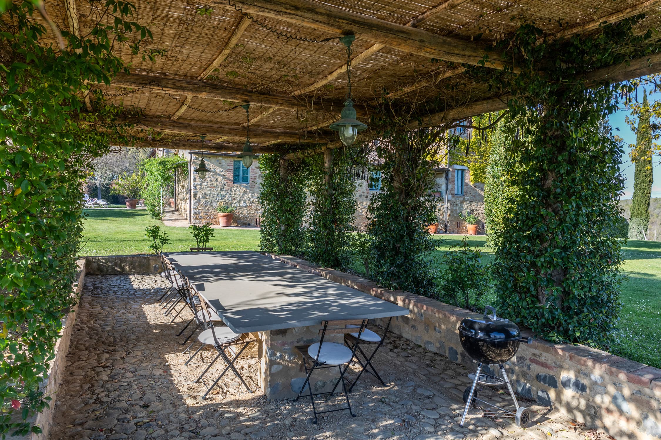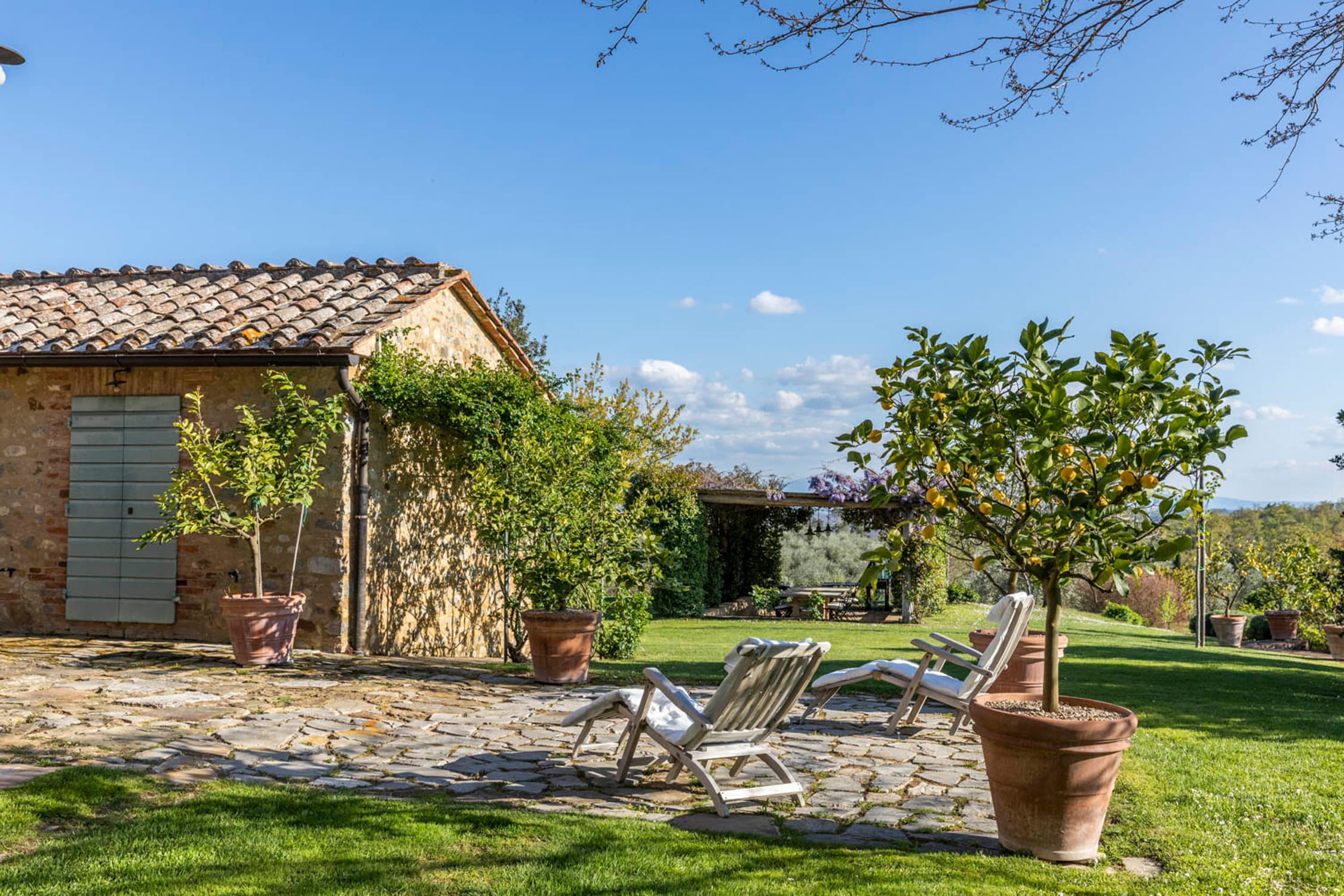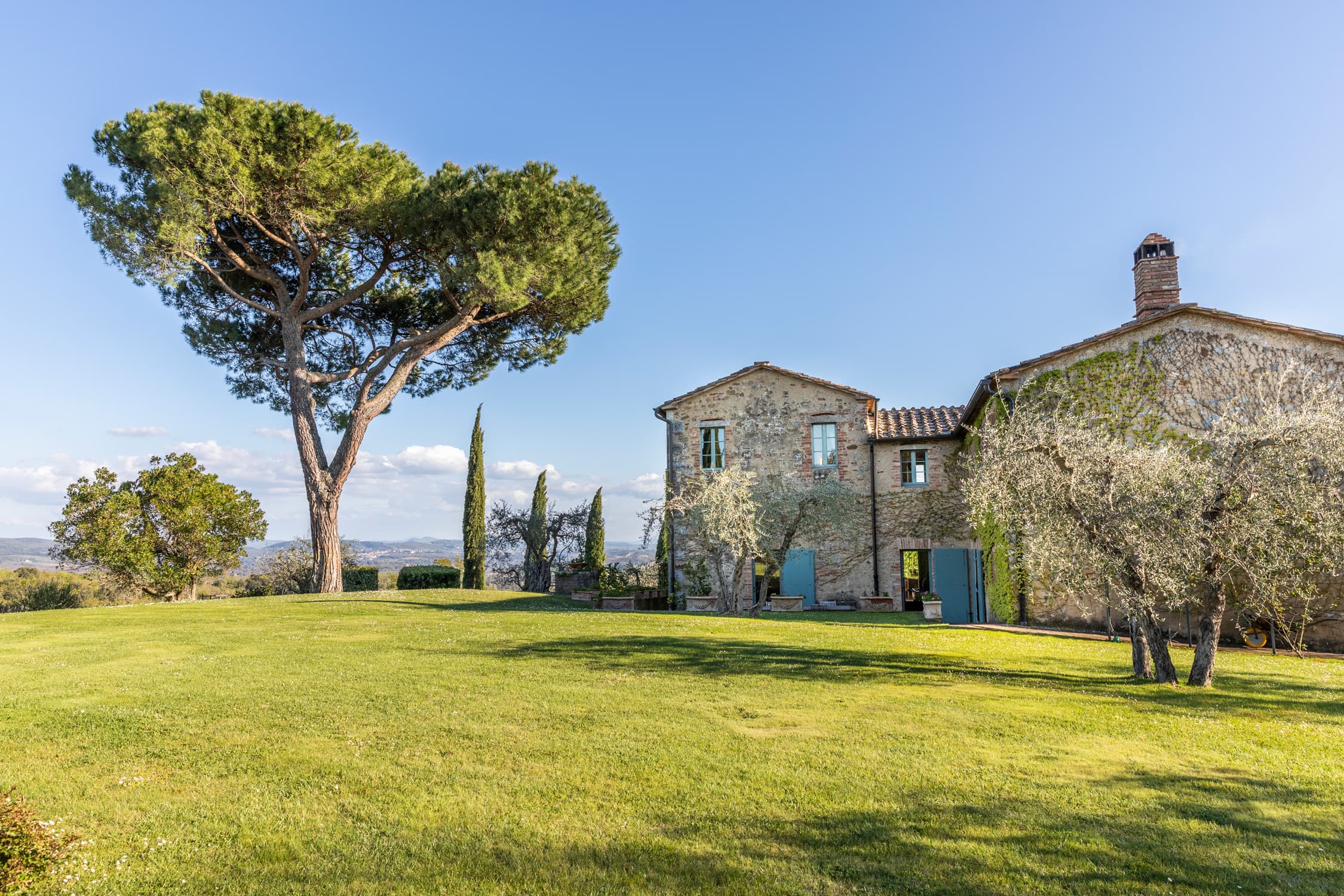 Stai pensando alla campagna toscana, quella più bella, nel punto in cui il Chianti incontra le crete senesi e sfiora la val d’Orcia? Adesso immagina una collina, proprio lì, in mezzo a un bosco di querce e castagni. Ora prendi quello sterrato, e mettici una casa, nel punto con la vista migliore, isolato da tutto. Ah, aggiungi ulivi, vitigni, roseti, alberi da frutta… E mettici dentro tutti i confort che desideri.